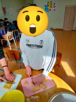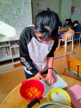 野菜のカットはいつもの様に、手を切らないように注意してね‼
