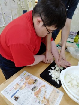 玉ねぎをみじん切りにします。(目が、、、痛い💧)